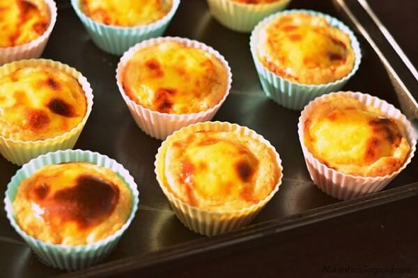 – Nướng bánh tart trứng trong khoảng  20 đến 25 phút, đến khi vỏ bánh đã vàng giòn thì lấy ra.