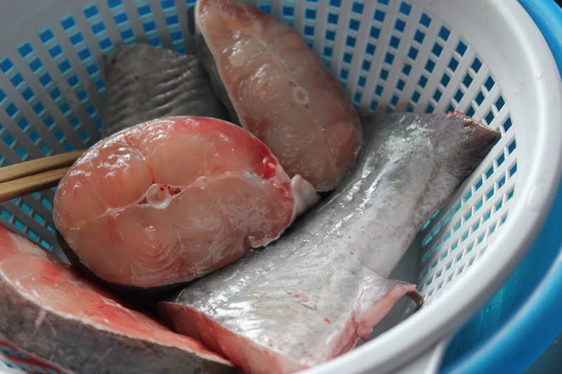 – Mua cá ở chợ về làm sạch, bỏ ruột, mang cá đi, rửa với nước muối cho bớt chất dơ. Sau đó cắt thành từng lát, vừa ăn