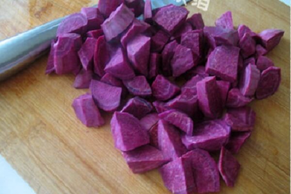 Khoai lang tím sau khi mua về các bạn cần rửa sạch để ráo nước.