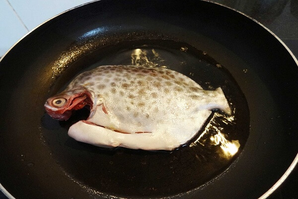 Bước 2: Làm thật nóng chảo để chiên thịt cá sẽ không bị dính chảo. rồi bạn cho ngập dầu ăn vào đun, dùng 1 chiếc đũa đặt vào chảo dầu, thấy sủi tăm xung quang đầu chiếc đũa là dầu đã sôi, cho cá vào chiên.