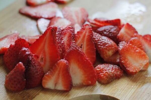 Dâu bạn rửa sạch, cắt miếng nhỏ.
