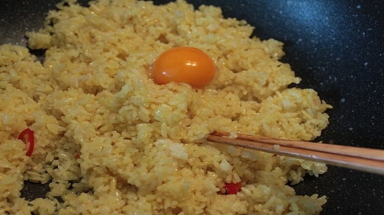 Nếu bạn cho tiêu vào trước khi tắt bếp thì vị tiêu sẽ không được thơm bằng. Một số bạn thích cơm giòn thì khi hạt cơm săn lại thì bạn ngưng đảo, để cơm cháy nhẹ ở lớp dưới khoảng 3 phút rồi tiếp tục đảo.