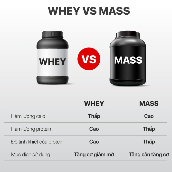 | Ai nên dùng? | Người muốn xây dựng cơ bắp sắc nét, người đang trong giai đoạn siết cơ, giảm mỡ, người cần duy trì vóc dáng. | Người gầy lâu năm, người khó tăng cân (hardgainer), người có quá trình trao đổi chất nhanh, vận động viên cần nạp năng lượng cực lớn. |