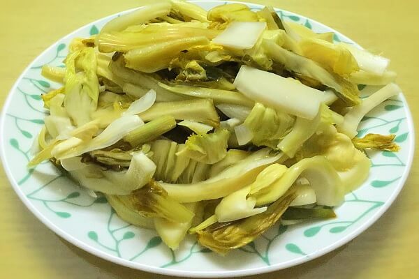 Bước 4: Sau đó bạn đem xắt nhỏ các miếng dưa chua và hành lá. Phần dưa chua thì bạn nhớ vắt cho bớt nước và xào sơ trước nhé!