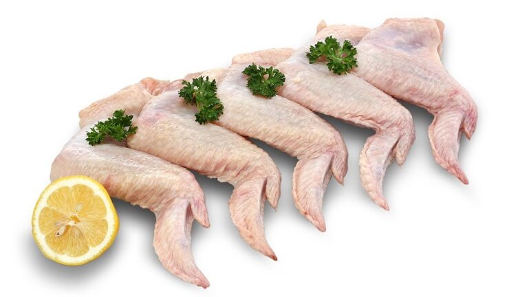 Bước 1: Đầu tiên chặt cánh gà làm đôi, rửa sạch với nước muối pha loãng rồi để lên rổ thưa cho ráo nước.