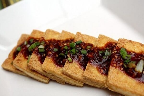 – Để trang trí thêm màu mè cho bắt mắt thì rắc thêm chút hành lá thái nhỏ lên trên đĩa đậu hũ rán, vừa cho có mùi thơm và vừa tô điểm sắc xanh thêm đẹp mắt.