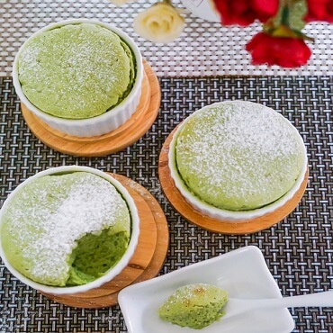 Souffle trà xanh với vị thanh nhẹ thơm lừng đặc trưng của matcha và vị mềm xốp, nhẹ bẫng tuyệt vời mà bất kỳ ai trong chúng ta yêu bánh đều muốn chinh phục.
