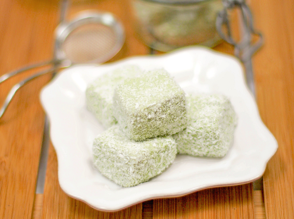 Kẹo matcha sữa Nhật Bản phủ một ít đường bên ngoài.