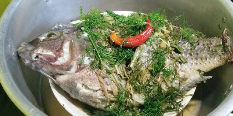 Ướp cá chép với gừng, sả, ớt băm để khử mùi tanh.