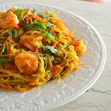 Nguyên liệu của cách làm bún gạo xào Singapore cho 4 người ăn: