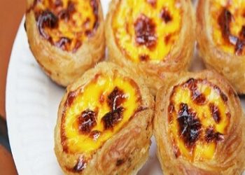 Bánh tart trứng kiểu Tây Ban Nha với đặc trưng là lớp vỏ bánh giòn rụm cùng nhân kem trứng...