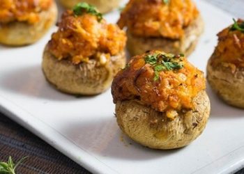 Nấm đùi gà nhồi hỗn hợp xúc xích, phô mai, bột chiên xù, được nướng chín thơm với vị béo ...